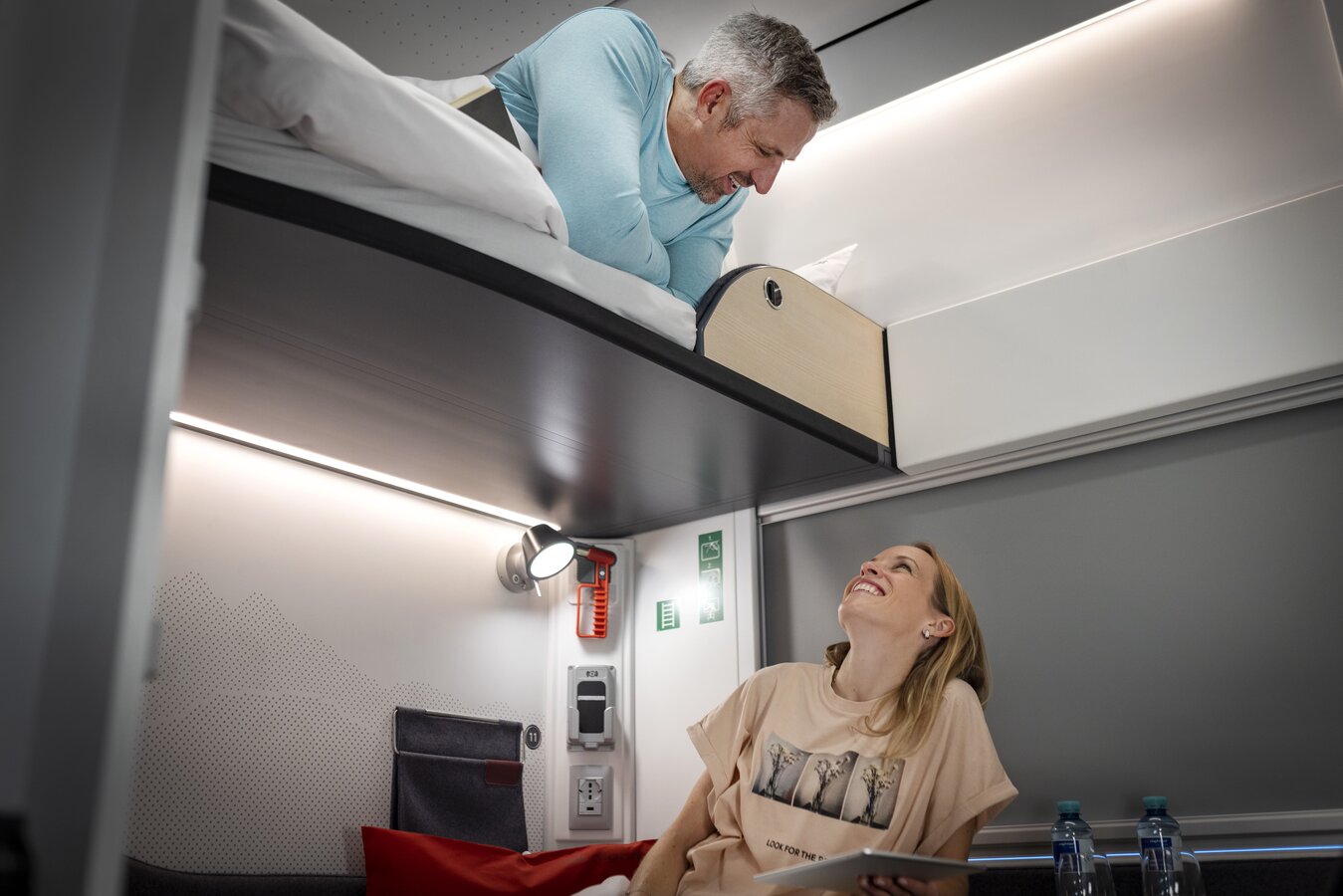 The new Nightjet sets new standards for overnight train travel. These modern trains offer various comfort categories for every type of traveller: Mini Cabins for solo travellers and couples provide maximum privacy in a compact space – equipped with reading light, folding table, and storage. Comfort couchette cars are ideal for families and groups, featuring fixed berths, Wi-Fi, and individually adjustable lighting. For maximum comfort, sleeping compartments with private bathrooms and exclusive moonlight views are available. Barrier-free compartments ensure a relaxed journey for passengers with reduced mobility. High-quality materials, modern design, and thoughtful details create a true “hotel room feeling” on rails.